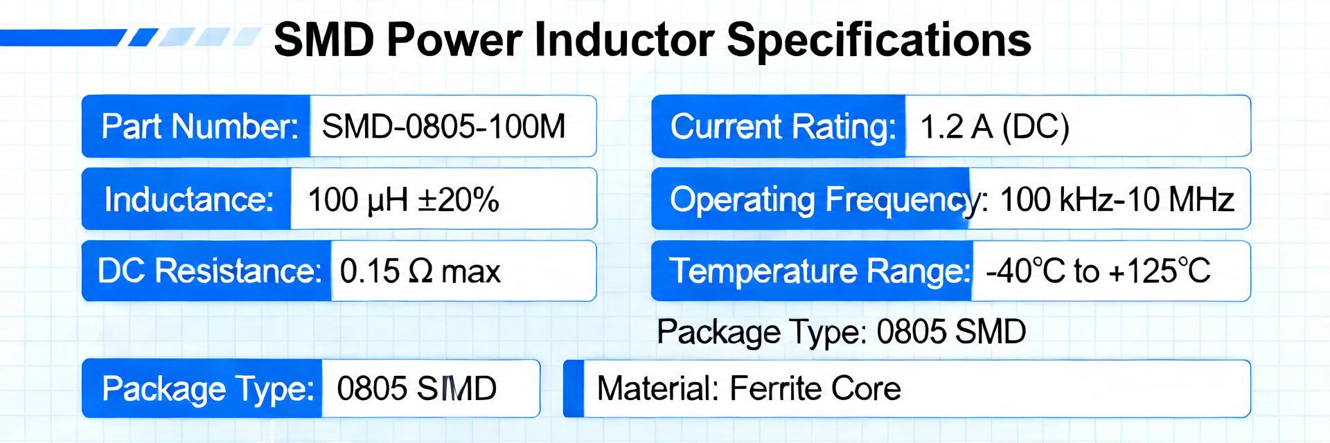 Bench-stat hook: Typical DC resistance (DCR) for 12µH SMD power inductors commonly ranges from ~20 mΩ to 300 mΩ depending on package and rated current, while saturation current (Isat) and usable current (Irms) typically span 3–15 A; those ranges directly influence converter efficiency and thermal headroom, making them critical for DC‑DC designs. This note delivers a concise performance snapshot and reproducible bench data plan for practical selection. The goal is to provide a clear performance snapshot, share reproducible bench data and actionable selection criteria so designers can rapidly compare parts, predict efficiency impact, and specify margin for transient currents using a standard test matrix. 1 — Why a 12µH SMD power inductor matters for modern DC‑DC designs (Background) Point: A 12µH SMD power inductor is often selected where moderate energy storage is needed without excessive footprint. Evidence: In synchronous buck converters targeting medium switching frequencies, 12µH balances energy per switching cycle and ripple current. Explanation: Choosing 12µH trades off size versus current capability — higher inductance reduces ripple but often requires larger cores with higher DCR and lower Isat, so designers must match inductance to switching frequency and transient profile. 1.1 Typical application contexts and design trade-offs Point: Common uses include buck converters, post‑regulation filters, and localized EMI suppression. Evidence: In buck converters, 12µH provides energy storage for moderate load steps while staying compact for surface‑mount designs. Explanation: Electrical trade‑offs include inductance vs. saturation current (higher L often reduces Isat), DCR vs. efficiency (lower DCR reduces I²R loss), and footprint/height constraints that affect thermal dissipation and allowable current. 1.2 Key electrical parameters that determine real‑world performance Point: Parameters to prioritize are L vs. DC bias, Isat, Irms, DCR (at 25 °C), core losses, and thermal rise. Evidence: L drops under DC bias; Isat defines when L collapses; DCR produces I²R loss and heat. Explanation: Use equations: P_DCR ≈ I_rms²·DCR for winding loss and estimate temperature rise via thermal resistance; core loss increases with frequency and flux swing, degrading efficiency at high switching frequency or under large AC current components. 2 — Technical specs & expected behavior: datasheet vs. real life (Data analysis) Point: Datasheets contain useful anchors but require scrutiny. Evidence: Inductance is usually stated at a test frequency and low test current; Isat may be defined at a specific % drop (e.g., 10% L drop) and DCR at 25 °C. Explanation: Prioritize L@test current and DCR figures with stated conditions; treat unspecified tolerance, temperature coefficient, and measurement frequency as caveats. Cross‑check with bench data for design confidence. 2.1 Datasheet specs to prioritize (and those to treat skeptically) Point: Trust L vs. test current, DCR@25 °C, and clear Isat definition most. Evidence: Vendors often publish L at 100 kHz/1 kHz and list Isat as current causing X% inductance drop. Explanation: Be skeptical of unspecified measurement frequency, low‑current L values, and vague Isat definitions; require DCR tolerance and thermal derating details for thermal budgeting. Use the part’s specified measurement conditions to compare apples‑to‑apples. 2.2 Real‑world behavior: inductance under DC bias and frequency Point: Inductance typically falls with DC bias and shows frequency‑dependent impedance. Evidence: Expect L to drop progressively from zero to rated current — often 20–70% decrease before Isat. Explanation: Measure L% vs. DC bias with axes: vertical %L (100% at 0 A) and horizontal DC current (0 → max rated) in steps; measure impedance magnitude/phase across 10 kHz, 100 kHz, 500 kHz, 1 MHz to reveal core and skin effects and annotate saturation onset where L fall accelerates. 3 — Bench testing methodology & reproducible test setup (Method/bench data) Point: Reproducible bench data requires defined equipment, fixtures, and conditions. Evidence: Use an LCR or impedance analyzer, a precision DC current source, thermal sensor, and low‑inductance fixtures to minimize parasitics. Explanation: Recommended setup: four‑terminal DCR measurement at 25 °C, L vs. I measured at 1 kHz and 100 kHz, impedance sweep 10 kHz–1 MHz, thermal rise with steady Irms and a calibrated thermocouple or thermal camera; document ambient temp and part preconditioning. 3.1 Test equipment, fixtures, and measurement conditions Point: Required tools include LCR meter, impedance analyzer or VNA, DC current source, scope with current probe, and thermal measurement. Evidence: Minimizing fixture parasitics (short, wide traces, Kelvin leads) and stable ambient temperature improves repeatability. Explanation: Use current steps from 0 to max rated in defined increments (e.g., 0.1 A near low end, 0.5–1 A near high end), ensure consistent PCB footprint or test jig and record measurement frequency and instrument models for reproducibility. 3.2 Data collection plan and reporting format Point: A compact test matrix speeds comparison and sharing of bench data. Evidence: Suggested matrix: L vs I at 1 kHz and 100 kHz, DCR@25 °C, impedance magnitude/phase 10 kHz–1 MHz, thermal rise at rated current. Explanation: Report tables with units and instrument settings, graphs for L% vs I and impedance vs frequency, and include precision (e.g., ±1% for L, ±0.1 mΩ for DCR) and environmental conditions to make bench data actionable. 4 — Performance Snapshot: Representative Bench Data Point: Typical observed ranges give designers quick filters. Parameter Typical Observed Range DCR 20 mΩ – 300 mΩ Isat (10% L drop) 3 A – 15 A Irms (thermal limit) 2 A – 10 A %L at rated current 30% – 80% of zero‑bias L Note: Present bench data plots with clear axes (current in A, %L or i